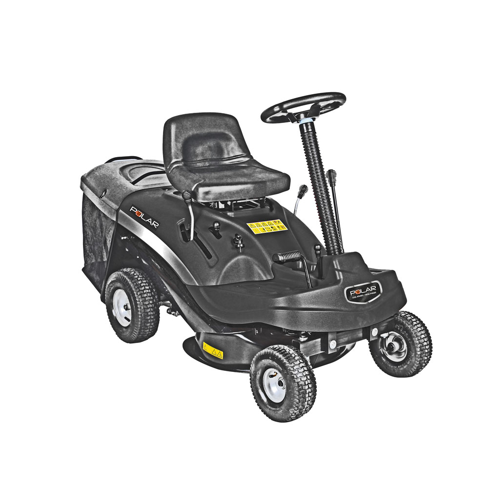 Rasaerba rider Polar da 196cc – 6,5HP. Munito di avviamento elettrico con batteria da 12V-7Ah. Consumo: 0,9L/h. 4 velocità di guida: 1,5/2,0/3,0/4,6Km/h. Retromarcia: 2,3KKm/h. Larghezza di taglio 610mm. 5 altezze di taglio comprese tra 35 e 75mm. Taglia fino a 2600 m2/h.
