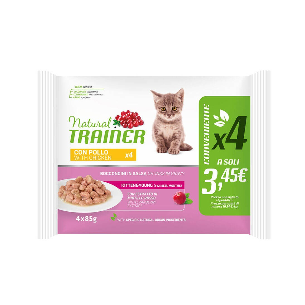 NATURAL TRAINER UMIDO GATTO KITTEN & YOUNG POLLO 4 BUSTINE 85 GR
